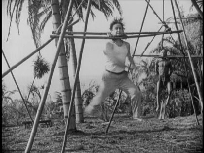 Cruze is constantly breaking up Houdini's earnest stare with independent activities. Every time he is alone with a woman, he seems to be doing something else, or else they get interrupted by everything from warriors with spears to a little kid -- the effect is sometimes nothing more than a hint of a smile on Houdini's face, but that can make a lot of difference as to how a scene plays.