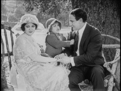 But despite being interesting, the film is just terrible -- this is where Houdini the producer sealed the fate of Houdini the star. Apparently he concocted the scenario himself and then, instead of hiring a real writer to turn his ideas into an actual story, he hired an inexperienced writer (and, I suspect, a yes-man). The muddled, melodramatic story is too often told with boring scenes of two people talking intercut with wordy inter-titles. There are bad guys talking about doing bad things (instead of just doing them) and, worse, pretentious-sounding discussions of spiritualist themes. Here, for example, are some of the opening inter-titles: "Tis said, 'The greatest work of God is man'-- but just as carefully devised to fit our hopes is man's conception of a life beyond the grave. This story starts where Dogma clashes with the promptings of a higher sense and leads to something which--because it is new--we think is mysterious." And just to drive the importance of this movie home, it begins with a close shot of "The Holy Bible" and ends with a passionate defense of reincarnation (theological consistency is not exactly its strong suit).