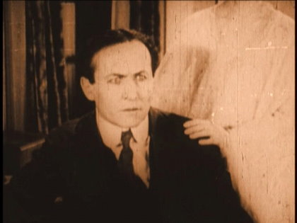 Houdini's performance shows a marked improvement over his work in The Master Mystery. I think a lot of the credit here has to go to director James Cruze. Cruze started out as an actor (he played the lead roles in a 1912 version of Dr. Jekyll and Mr. Hyde) and you can see all kinds of actorly touches in Houdini's performance. For example, contrast Houdini's usual mode of doing dialogue scenes in The Master Mystery: eager face, leaning forward, staring fixedly at the person he is acting with, as if hanging on every word...